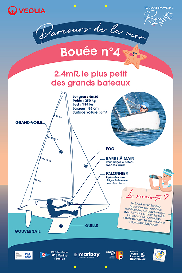 22 panneaux à la fois destinés aux adultes et aux jeunes publics abordent des thèmes allant de la voile en régate, à la biodiversité en passant par la sécurité en mer. Cette année, des panneaux mettent également en valeur les 400 ans de la Marine nationale.